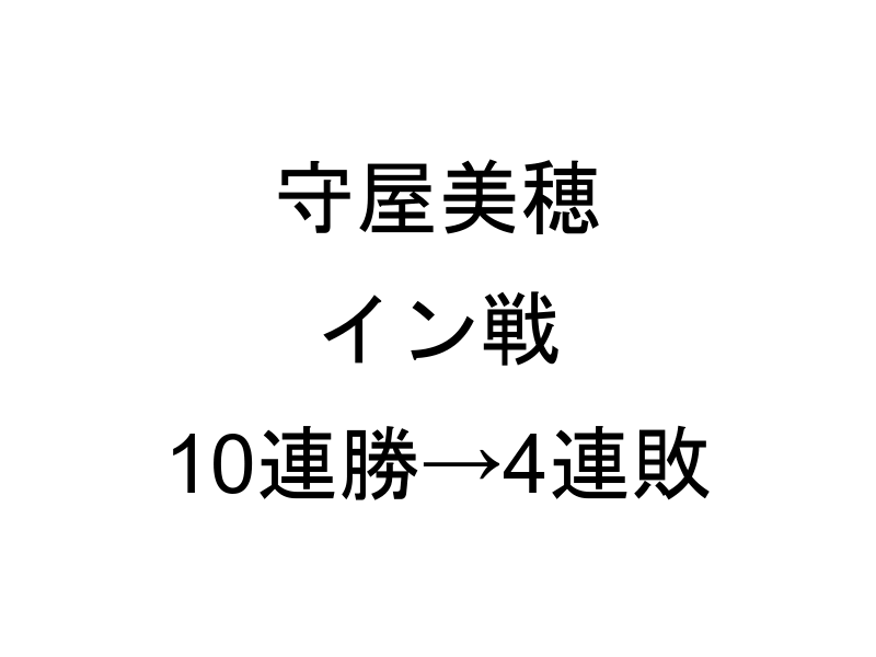 守屋美穂選手は、前節の尼崎競艇場で開催された一般戦でも、シリーズ4日目と最終日のイン戦でそれぞれ2着と6着と敗れたのに続き、今シリーズ初日の12Rガァ〜コ選抜でも1コースから3着に敗れており、これでイン戦は4連敗となりました。